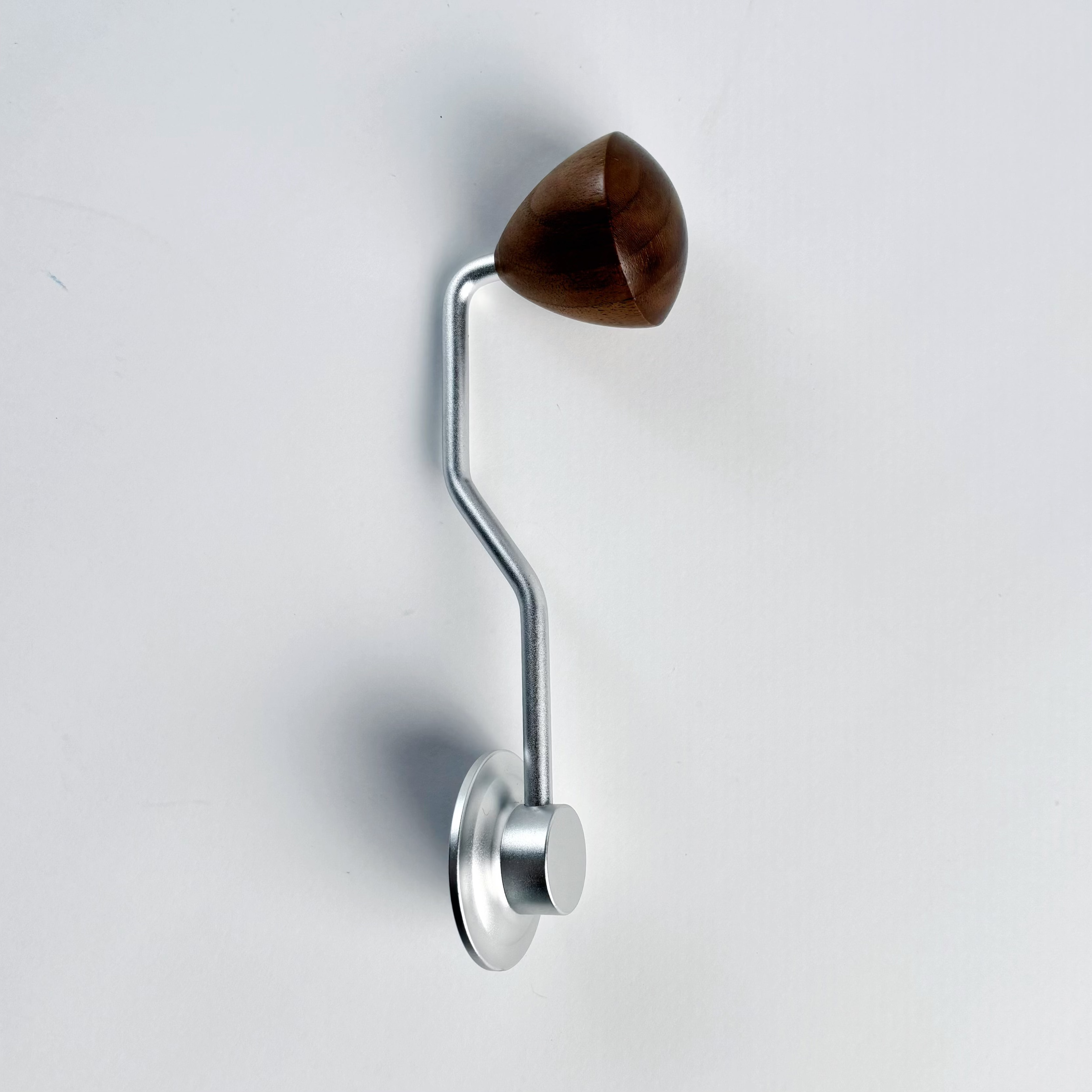 The smooth wooden handle provides a fine grip, transferring your rotation directly to the internal conical burrs for effortless manual grinding.